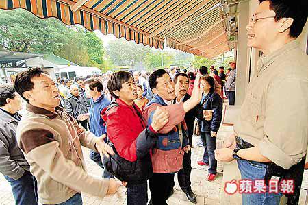 【本報訊】每日聚集於屯門公園的業餘曲藝團,被指製造噪音滋擾民居,前日遭康樂及文化事務署等部門掃蕩,工作人員昨日更在表演場地擺設圍欄封場。驟失免費娛樂的數百名區內街坊,昨午湧到公園辦事處抗議。雙方經協商後,曲藝團同意暫時遷到鄰近空地開檔獻唱。 記者:蔡建豪 梁美寶