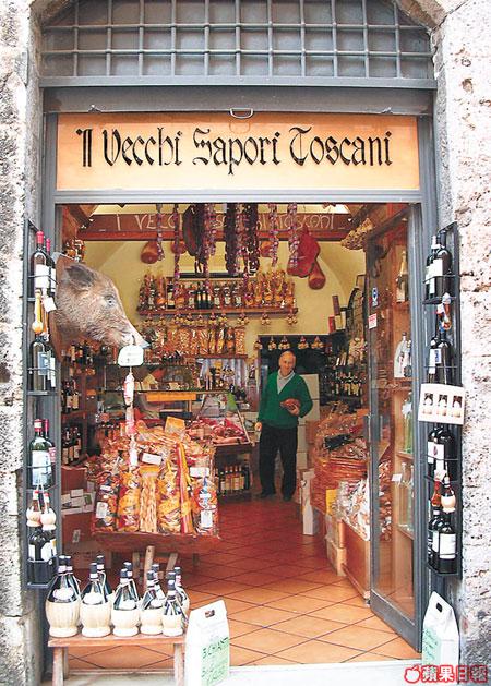要離開的那個黃昏,我一嚐Chianti酒。這種托斯卡尼葡萄酒,因為獨特的土壤和氣候,據說有一種與眾不同的高貴味道。餐館習慣在晚餐的時候點起蠟燭,鋪上雪白的桌布。意大利式鱘魚塊、蘑菇燴牛肋排、磨坊小龍蝦、海鮮通心粉……一道道托斯卡尼美食上來了。傍晚夕陽金光,映照着街景和古城遺迹。這是百分之百的托斯卡尼。這個春天,Chianti的味道份外濃烈,讓人迷失方向不忍離去……
