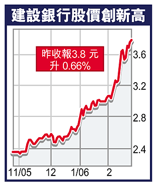 按上市招股書所列,建行去年度純利預測486億元,范一飛不願在業績公布前評論該行表現,但相信該行發展可按目標推進。他說,自去年10月底上市以來,建行市值至今年2月,已超過1000億美元,目前市值躋身全球銀行業的第七位。