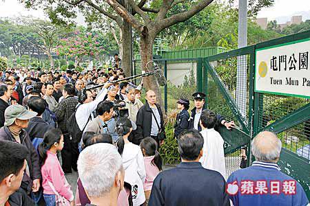 【本報訊】屯門市鎮公園曲藝表演場地日前解封後,昨日再度發生樂團表演者與康文署職員爭執,職員四度干涉表演者使用外置揚聲器,一度報警,百多名知音聽眾起哄,包圍及辱罵到場調查的一對男女警員,需由公園保安員拉成人鏈保護離開,警署警長到場勸喻,最後才避過衝突,樂團將於下周日約同康文署、環保署職員到現場談判,解決事件。 記者:陳天華、譚健文