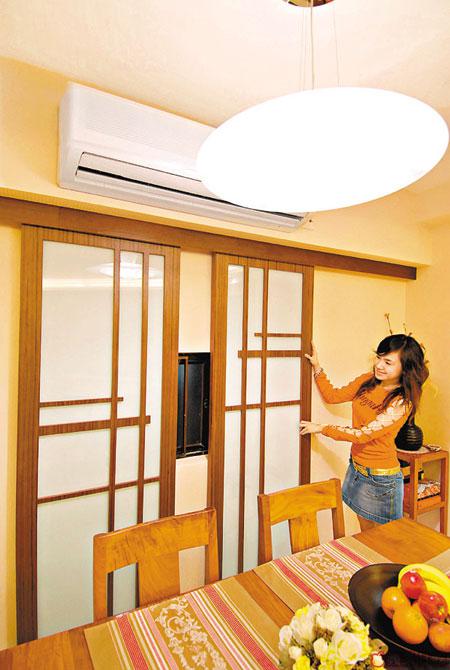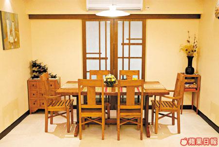 來到客飯廳,米色的基調綴以深啡色的傢具,予人柔和舒適的感覺,這是因為屋主偏愛清雅色調,米撞啡可調和啡色傢具的深沉。往飯廳那邊看過去,發現一扇與榻榻米房配合得天衣無縫的日式趟門,除了統一客飯廳的和風格調外,亦可遮蔽與飯廳格格不入的窗口,「原本這兒加了一堵紅磚牆,天花及牆外裝上深啡色木框,繞上植物營造園林感覺,但發覺太過侷促,之後再改動成現有模樣。」正如Eva所說,家,還是舒適最重要,縱然之前的園林裝潢夠特別,但擠壓感太強,裝修不久便再作第二次改動,這亦正正貫徹屋主愛清雅的品味。