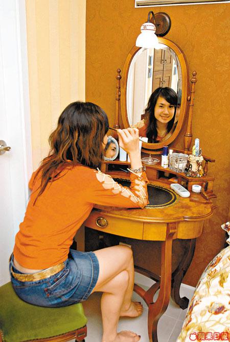由偏廳至客飯廳,一式的和風格調,記者一廂情願地以為睡房定必同樣是榻榻米;然而,主人房的布置完全是另一個Tone,以歐陸宮廷Feel為主題,而設計意念緣於床頭兩旁的梳妝枱及書桌,「有次行經傢俬店,無意間看到這張書枱同梳妝枱,好鍾意它們的手工同用料,無考慮到屋內的設計便買下來;放在舊屋時,裝修上沒有刻意配合;而今次設計師特意把房間布置成歐陸式的古典宮廷,襯番書桌枱同梳妝枱。」除了用傢具及牆紙營造古典味外,Eva在床鋪及小擺設亦花上心思,務求令房內的宮廷Feel更一致。