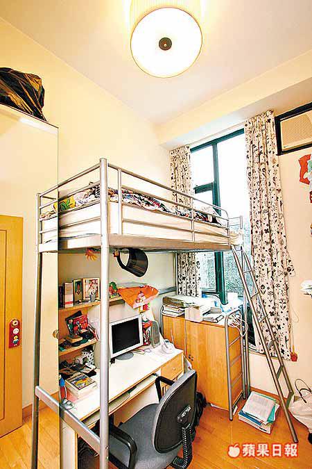 高樓底令室內倍感開揚,睡房即使置放特高碌架床,亦全無壓迫感。
