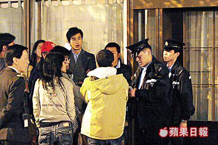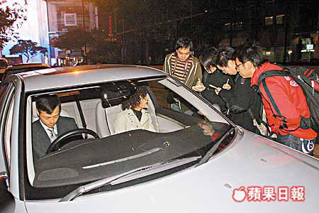 燙了一頭公仔麵曲髮的邵美琪,前晚穿上米色皮褸及牛仔褲,埋位前一直躲在公司車內,到拍攝時才下車。雖然前晚以文戲為主,但見邵美琪忐忑不安,雙手夾實手機不停把玩,大抵是因她擔心被問及有關伊健的問題,才表現得不大自然。