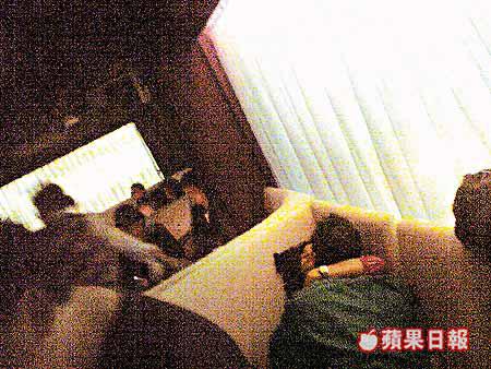 昨日凌晨約二時,家強與女友及大班朋友現身蘭桂坊Mooch酒吧,當時他幾杯落肚,在酒精刺激下零舍狂野,先與坐在身旁穿短裙仔的女友攬作一團,二人又咀又摸,女的伸手撫摸家強的臉和胸後,伏在他身上打茄輪,其後家強一個反身將女友推倒在沙發上,肉緊地攬住她狂啜。