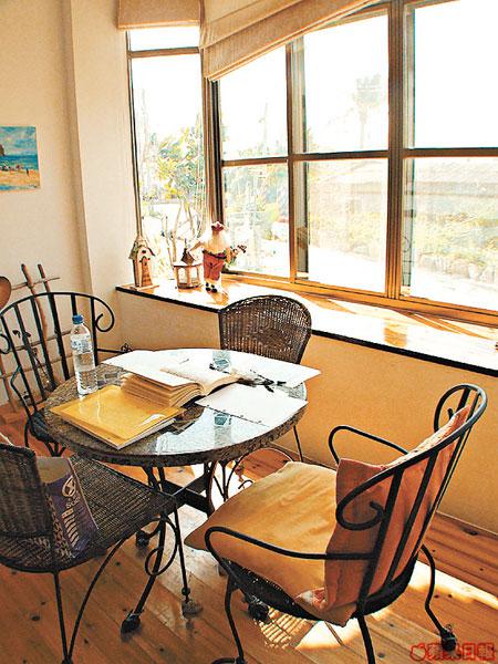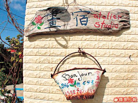 畫宿與小徑民宿毗連,但感覺卻是截然不同,像一下子由希臘走到南法一樣。這裏本是畫家黃正德的畫室,供同好者南遊墾丁時一處歇腳之地。室內的裝潢簡潔雅致,是屋主刻意模仿南歐風情、仿照著名畫家的畫室而改造。墾丁長年陽光普照,的確與南法很相似,猛烈的陽光從薄薄的紗窗簾透進房間裏,照射在木地板上,製造溫暖的感覺,極有梵高在阿爾的「黃色小屋」風範。在這裏除了有住進南法蔚藍海岸的感覺,而且還是一個小型美術館,黃正德的油畫作品,還有他就地取材的藝術擺設,如牆上的掛鐘,就是他用廢棄的生銹鐵片,加海邊撿回來的樹枝改裝而成。