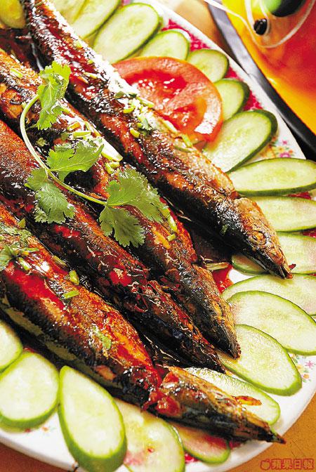 4條秋刀魚、1條青瓜、1個番茄、1茶匙胡椒粉、2湯匙燒烤蜜糖、2湯匙鰻魚汁