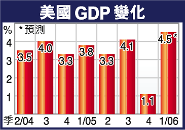 53名經濟師調高美國首季經濟增長預測,由原本平均估計的3.4%,向上修訂為4.5%,優於上季的1.1%。