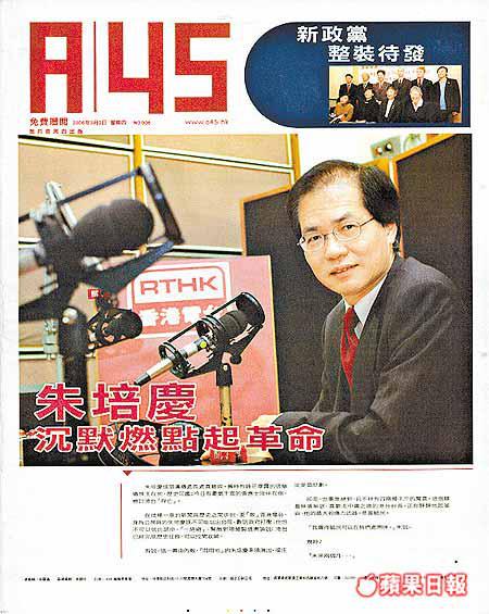 廣播處處長朱培慶接受45條關注組報章《A45》訪問時自爆,不排除邀請前商台名嘴黃毓民兩個月後於港台開咪,目前需要與負責同事再商討。據了解,朱培慶是在數星期前一個飯局上,非正式邀請黃毓民在港台開咪,其間黃笑稱欲與《千禧年代》節目主持人周融合作主持節目,結果港台就此積極研究。