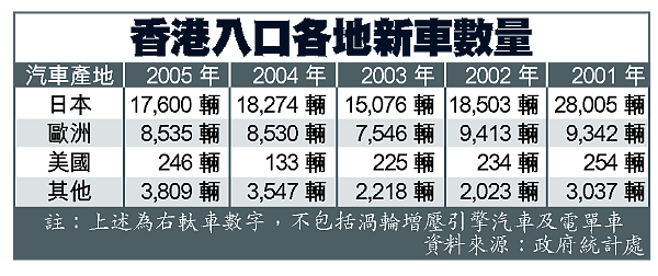 美國車廠在香港不設正式代理商,每年入口香港的二百多輛美國車多屬水貨形式入口,並以大型車為主,業界人士稱由於美國車廠只生產左軚車,故心儀美國車的消費者,訂購回港後可能需花巨款改為右軚,有水貨車行窺準這另類市場,近日引入首批美國右軚車。