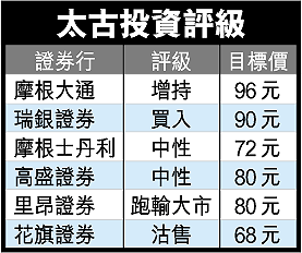 不過,該行認為太古最能受惠於本港寫字樓市道好轉;若進一步落實新的投資項目,可能利好股價,故建議「增持」,目標價96元。