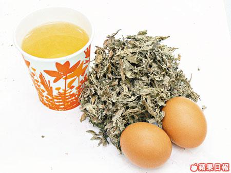 材料:新鮮艾葉5克、連殼雞蛋1隻