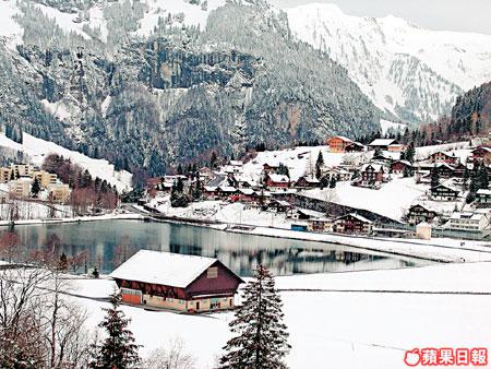 抵達琉森,綠和白都不是,樹是禿禿的,山半灰半啡,傳說中的童話王國,只剩下十五世紀遺留下來的七彩牆壁,就連琉森湖上的那道古老的卡貝爾木橋,也因花未開而顯得有點落泊,心裏還依戀着雪山的風光……不過一小時的車程,我們就來到以360度旋轉空中纜車(Rotair)著名的鐵力士山。這時的鐵力士山仍是滑雪天堂,可惜此際天灰灰,從山腳根本看不到海拔3,020公尺的山峯。還以為天公不造美,誰知纜車一穿過雲層,窗外不只是藍天,雪還亮晶晶的閃耀着!上到山頂,雪峯在藍天陪襯下,格外有氣勢,我們一見白皚皚的天堂就發癲了,撲進大雪的懷抱,拋雪球堆雪人,還要在150公尺長的冰隧道捉迷藏,在藍洞內賞冰雕,總之,有雪的地方就令我笑得開懷!