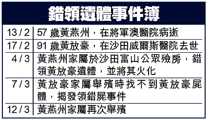 江女士慨歎,自從前夫於二月十三日突然離世後,她為了打點喪事,一直沒有上班。直至發生屍體「掉包」事件後,當日負責認屍的長子,因感到內疚,情緒十分低落,他亦要請假休息,令一家經濟雪上加霜。
