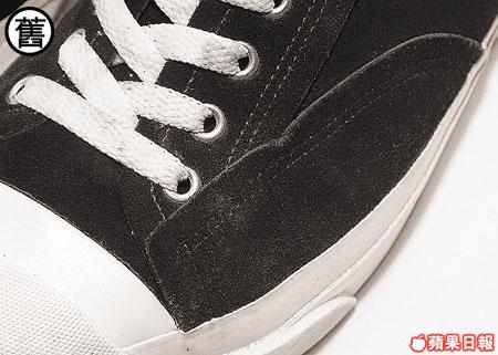 今次「T」系玩爛鞋,當然有根有據,每一個Detail位都有刻意營造嘅「殘廢」位,每口鉚釘都特別上色,製造出破舊感,而鞋身就用上洗水效果令到整對鞋更加爛。唔止,佢仲刻意假扮CONVERSELogo印,最後當然唔少得將軍事味粗身拉鏈強行切入,不倫不類中又迸出火花來。如果將對鞋放喺後巷,真係睇唔出係一對值$5,000大元嘅炒鞋,大家可能以為係一對破舊CONVERSE呢。