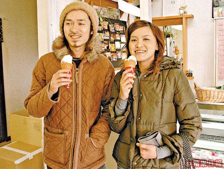 櫪木縣是日本生產最多士多啤梨的地方,也是最甜的,皆因政府成立的研究中心於10年前發現種植士多啤梨的妙法,雖研究結果已於5年前公開,但至今櫪木仍保持着一哥的地位。而日本人食士多啤梨的方法也很特別,是由有葉子的頂部吃起,因為底部屬於最甜的部份,要留待最後才享用,以後到日本食士多啤梨,記得要入鄉隨俗喇!雖已吃過原隻士多啤梨,但副產品也是不能錯過,見到對面有雪糕檔,我也不顧當日只有2度的氣溫,一馬當先衝進去買杯來歎。