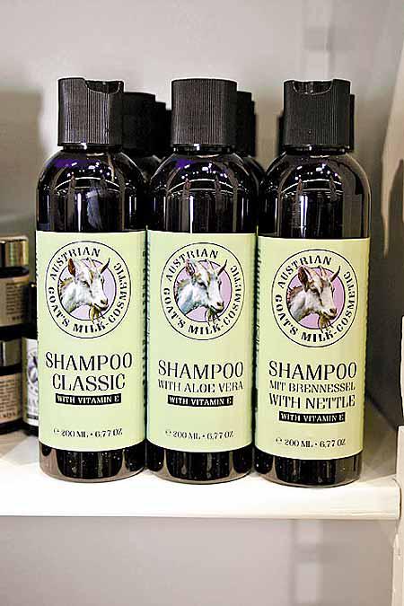 以動物奶作護膚品是早有記載的古法,奧地利Styx-Naturcosmetic以有機馬奶製成沐浴液,能促進皮膚新陳代謝,其酸鹼度中和適合敏感皮膚;又有山羊奶洗髮劑(圖),羊奶成份能提供多種礦物質。