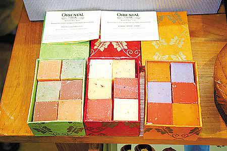 以米糠油造成的OrientalSpa肥皂,含有豐富維他命及礦物質來滋潤皮膚,產品加入天然植物精華油提供香味及顏色,每盒售價8.9歐元。