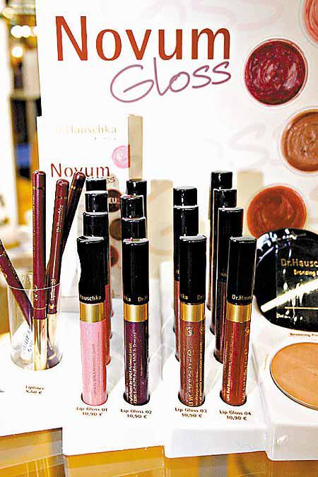 採用天然植物提煉材料造成的Novum潤澤唇彩系列,同時加入藥性植物來增加護理功能,每支售價10.9歐元,吸引入場女性(圖)。