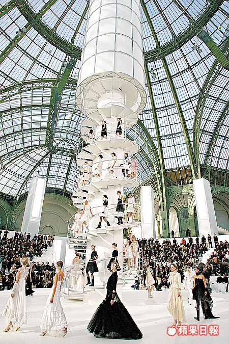 法國名牌Chanel的掌舵人KarlLagerfeld明天率領二十多名國際名模來港,後晚假將軍澳ShawStudios呈獻一個○六春夏HauteCoutureshow給本地傳媒及社交名人,這亦是香港有史以來最完完整整的一場coutureshow。Chanel這個HauteCouture系列一月時在巴黎發表,壓軸時眾模特兒站於一座火箭旋轉樓梯謝幕,後晚也會重演。