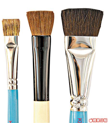 掃頭特徵:扁平斜腳細掃,纖維或動物毛皆有。