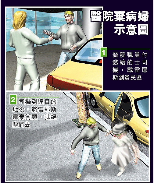 洛杉磯有多間醫院承認,曾經用的士送走一些窮困而且無依無靠的病人,但他們辯稱這樣做會令病人獲得庇護服務的機會。警方表示自從去年九月,便陸續發現有病人流落街頭,部份身上甚至還掛着糞袋(ColostomyBag)。