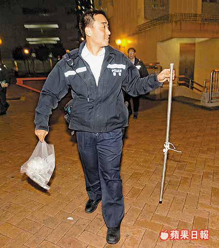 昨傍晚五時許,數名港島東區重案組的探員偕陳妻同到富盈樓十九樓陳家門外,探員拍門但無人反應,陳妻取出門匙擬將門開啓,但疑大門被人在內反鎖無法打開,探員遂找來鎖匠才將大門打開,探員入屋發現陳在浴室用一支鐵枝及尼龍繩纏頸吊頸自殺,已死去多時,立刻致電報警,警員及消防救護員到場證實陳已死去,將他解下調查。