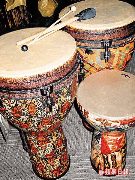 之後,李姑娘拿起鼓棍在非洲鼓上打出有秩序的節奏,坐在李姑娘右邊的江老伯,打得最投入、最自我、最起勁。