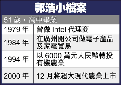 不過,郭浩一於冇有怕,原因是要建立像超大的信息網、種植規模非朝夕可達之事,且超大品牌效應開始見效,無論價錢及銷貨,在人們食品安全意識提高後,較其他對手的優勢逐漸顯現。
