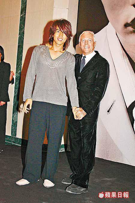 意大利時裝大師GiorgioArmani前晚於上海大劇院舉行高級訂做服時裝騷,年屆七十一歲的單身貴族Armani,對初見面的F4成員言承旭最為殷勤,三度摸捽其面珠,又握着他的手及搭膊頭合照,來一個「斷背」式擁抱,Armani似乎很欣賞言承旭的「少男」氣質,反而一向深得他歡心的章子怡則備受冷落。