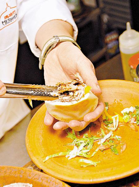 烤肉土耳其包DonerKebap,在土耳其,烤肉稱為Kebap,Doner是旋轉,合起來就是旋轉烤肉的意思。走在土耳其的大街上,你可以看到用不同材料製成的肉柱放在烤肉架上旋轉烤熟。因為每家每戶用的香料都不同,烹調出來的味道亦不一樣。位於諾士佛臺的土耳其餐廳Merhaba就有正宗的土耳其包食,以牛肉和羊肉製成的肉柱用洋葱和黑椒碎醃過夜,再浸鮮奶,避免肉在烤製的過程中太乾身,待20至30分鐘後肉就會烤至金黃色,用薄刀將肉從肉柱上削出來。紅蘿蔔絲、生菜絲、番茄製成的雜菜用檸檬汁、橄欖油和鹽調味,配合烤肉和酸乳酪,夾在麵包內,就成為份量十足的DonerKebap。烤好的肉啖啖多汁,麵包會吸收烤肉汁,真係一滴都唔會浪費,DonerKebap亦可以邊走邊吃,非常方便。