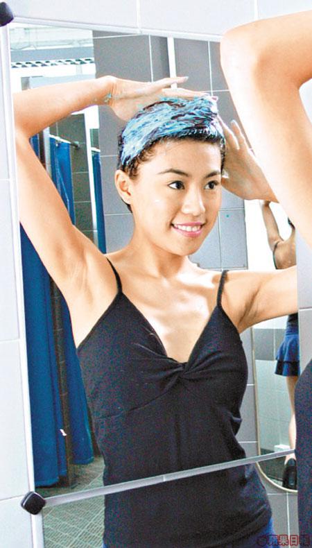 Model搽hairmask後,在sauna房焗20分鐘,睇吓頭髮夠唔夠濕潤。