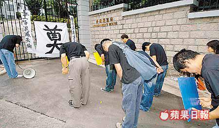另外,職工盟近30名代表,昨亦由中環滙豐銀行遊行至禮賓府,並在禮賓府門外掛起白布和輓聯,悼念在過去2年因工時過長、積勞成疾及因長期加班而意外死亡的工人。示威者在禮賓府門外向死者鞠躬,並促請政府就最低工資及標準工時盡快立法。