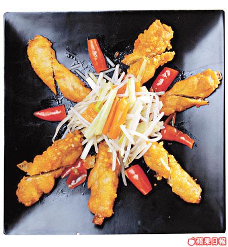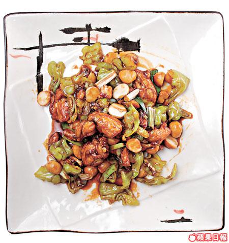 以爽脆的扭紋椒和鬆脆的果仁同炒的田雞腿,汁料鹹香惹味,不覺在吃辣菜。
