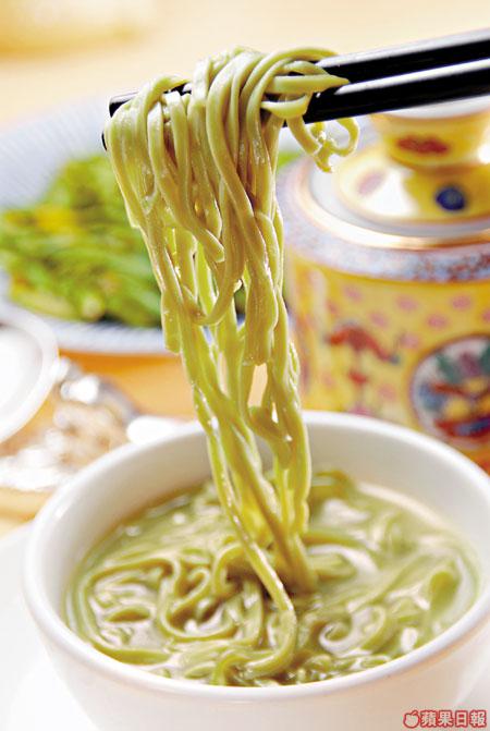 自創辣汁麵條,以小米椒磨成汁後混入麵粉,再手打成的麵條。麵質煙韌,色澤翠綠恍如菠菜麵,入口卻辛辣無比,伴以不帶辣的香濃雞湯,令辣味更突出。