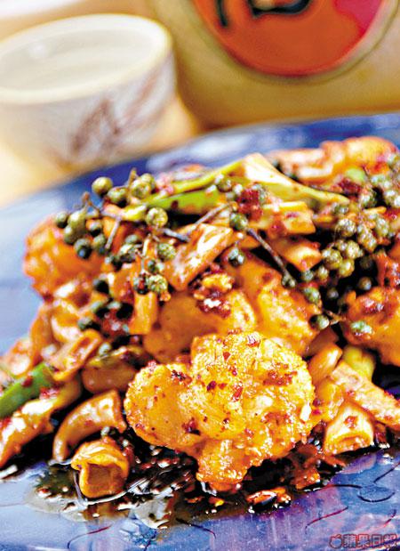 以鹹味較重的白椒炒蝦球,加上胡椒和香濃汁料同炒,味道濃香,入口帶一陣麻辣的刺激味道。
