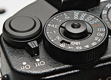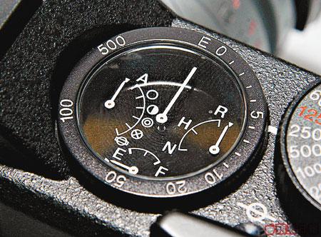 更特別係轉盤有1個類似油壓式計表,可顯示電量、相片數量同質素等資料,不過顯示因為用上大量簡寫,如果唔睇Menu一時間都幾難估到代表啲咩。另外,快門掣旁邊更保留咗拉菲林掣,R-D1s當然無用菲林,不過就強制用家影完1張做1次拉菲林動作,否則快門掣完全不會理你!