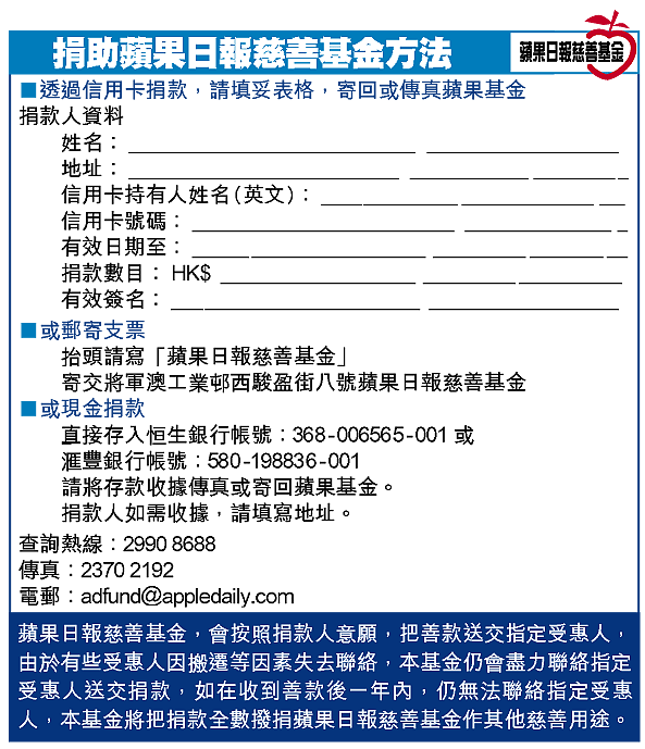 接受有關手術的病者需要自行購買所需的醫療器材,費用約16萬元。惟因華叔病後無法工作,其妻亦要全天候照顧他,目前只靠任職售貨員的同住幼子支撐生活開支,難以掏出10多萬元,亟待善長援手。