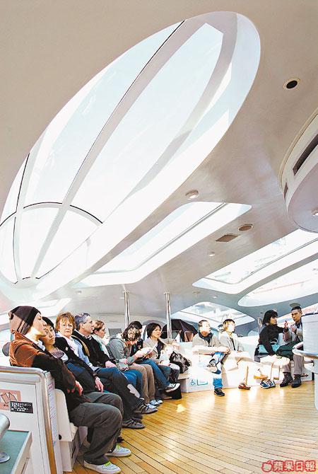 其實,這種設有45個座位的雙層觀光巴士「SkyBus」早於年多前已在東京行駛,路線由東京車站附近的三菱大樓出發行經皇居、國會議事堂、霞關政府機關、然後繞道日比谷、銀座、京橋、順着皇居周圍繞一圈,肩負起導遊的使命,而且相當稱職,在短短45分鐘車程內,沿途都有電子廣播,介紹每個地方的特色,還可跟工作人員借部PDA,它跟車內的廣播系統連接,有英文、韓文及普通話錄音的導遊系統。