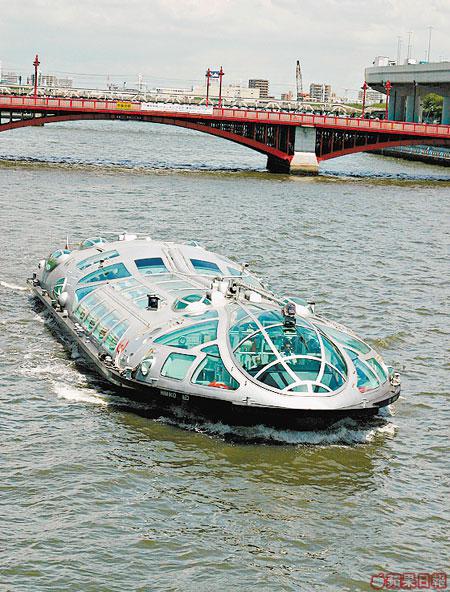 如果想體驗吓下町風情,可以乘坐隅田川水上巴士。遊完雷門寺後,就可以由淺草出發,再到隅田川旁的乘船口搭乘水上巴士。當中最受注目的是由《銀河鐵道999》作者松本零士設計的未來型水上巴士「Himiko」,以「淚滴形」作為設計概念,船身以銀色金屬及玻璃為主,充份表達未來感,而且船內的導遊案內,是由「999」的一班主角來配音,對粉絲來說坐得特別投入,坐在我旁邊的正是一班女粉絲,剛大學畢業,趁未返工,出來玩一下。