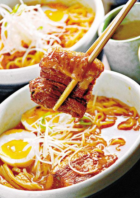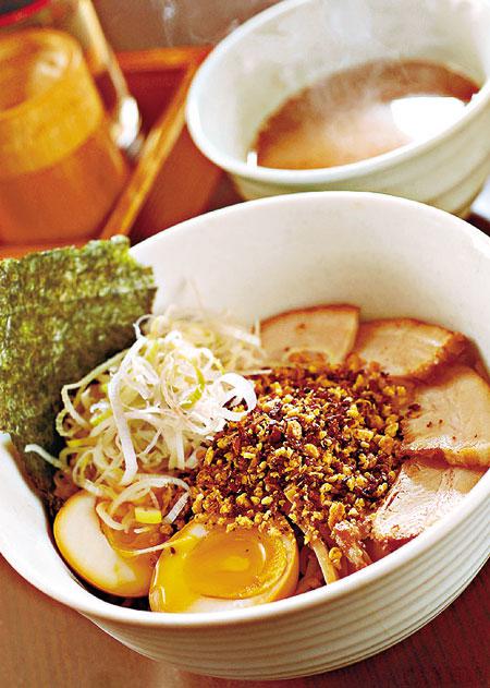 打破一般日本拉麵只用叉燒做餸嘅傳統,用上一隻豬只有兩支嘅顴骨上面嘅肉做餸,感覺上滿足過食一塊塊薄英英嘅叉燒。