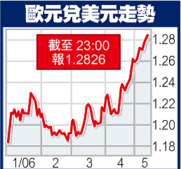 亞洲時段,歐元一度挫至1.2686美元,跌0.98美仙;美元兌日圓曾升見111.52,升1.03日圓;英鎊曾跌去1.05美仙,低見1.8532美元。紐約開市後,美元急轉直下,歐元曾攀上1.2862美元,倒升078美仙;英鎊回升到1.8811美元,升1.74美仙,與歐元齊創1年高峯;美元降至110.43日圓,跌0.06日圓。