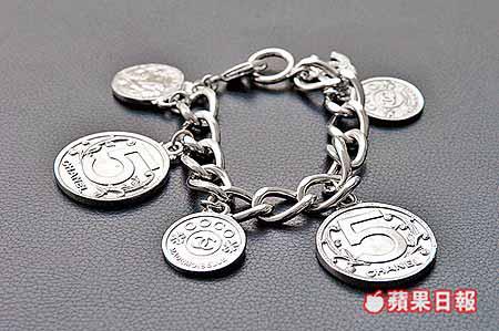 Chanel是名副其實屬於onthetop的superbrand,在這樣真正高檔次店舖,亦間中可發掘價錢相宜的cuteitems。近日中環總店就有一批用銀幣做主題的小首飾登場,包括銀幣手鏈和頸鏈等,silvercoins烙上Chanel最經典元素如5字、創始人CocoChanel的肖像和Coco字樣等。最便宜的鎖匙扣只售1,000元,買1件實實在在的fashionstuff外,還可以感受那份頂級貴氣。