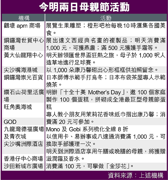 馬哥孛羅酒店發言人指出,旗下三間酒店推出的母親節自助晚餐幾近爆滿,其中一間因訂滿需增設宴會廳以應需求。