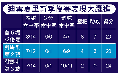 小馬與馬刺的決戰勝負仍未定奪,唯一可肯定是小馬若能淘汰衞冕之師馬刺,迪雲夏里斯必居功至偉。