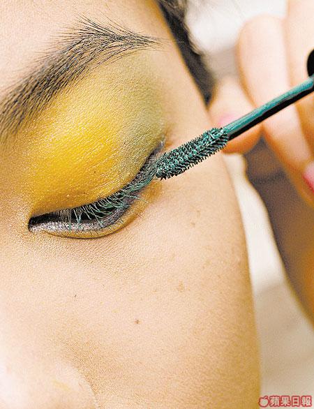 Va係超級巴西擁躉:「巴西隊陣容勁嘛!有大哨、細哨、卡卡,掂梗啦!巴西國旗的綠色和黃色又啱晒夏天,當然化個巴西妝啦!」化妝師說,想明顯有巴西感覺,一定要用黃色和綠色眼影,塗在眼頭和眼尾,效果突出。巴西國旗中間的粉藍色,可用作眼線色。