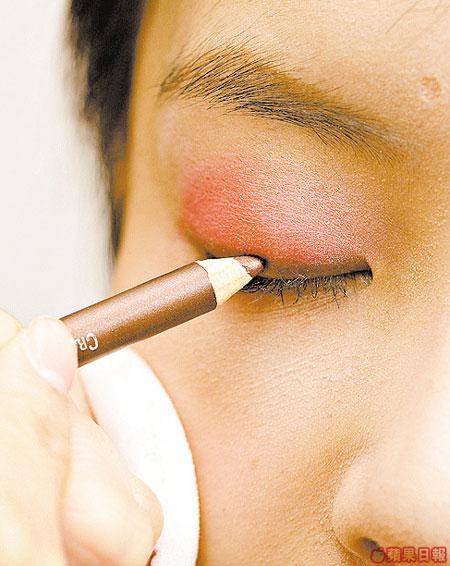 2.想眼影顏色實淨,可先塗上啡色眼影打底,顏色會較明顯。