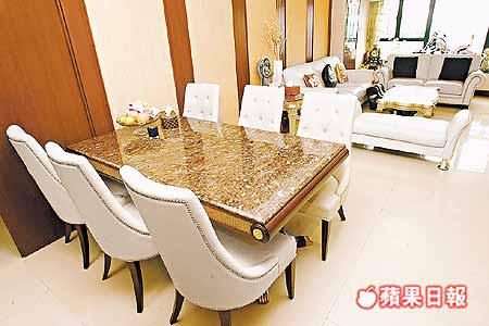 相連放盤位於單邊的7座高層,由於每層僅兩伙,相連戶等於坐擁幾乎全層樓面,私隱度高。業主將兩戶打通,原先改裝成4房3廳,客廳近千方呎,另飯廳偏廳各佔300方呎空間;後因親友一家搬入,大宅又再一拆為二,原有巨廳中央加層板分隔,偏廳改作睡房,形成現時的5房4廳局面。