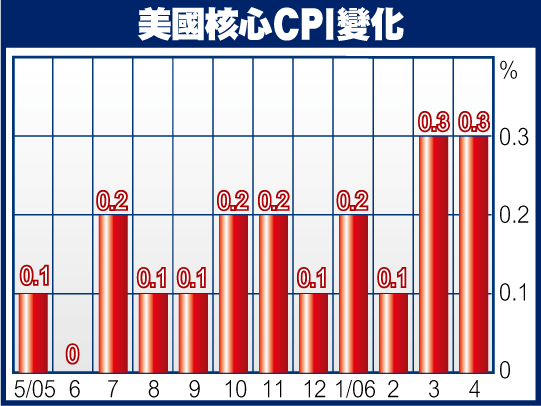 隨着能源漲價,美國4月份消費物價指數(CPI)升0.6%,快過市場估計的0.5%和3月的0.4%。扣除食品及能源項目,上月核心CPI升0.3%,升幅與3月相同,但大過預期的0.2%,反映需求殷切令美國企業更具條件加價。