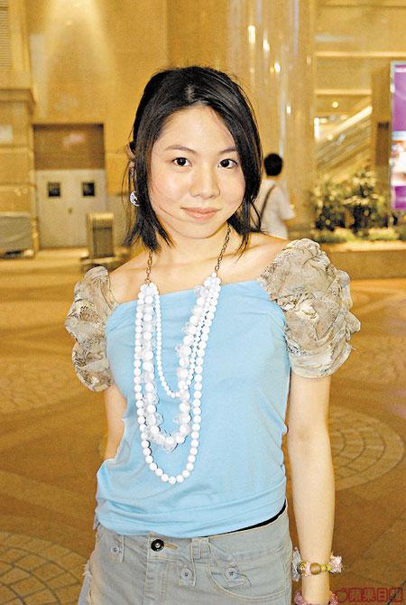 配搭Tips:充滿夏日感覺的清新淺藍上衣配以今季大熱白珠長鏈,大小不同的珠子感覺更活潑。